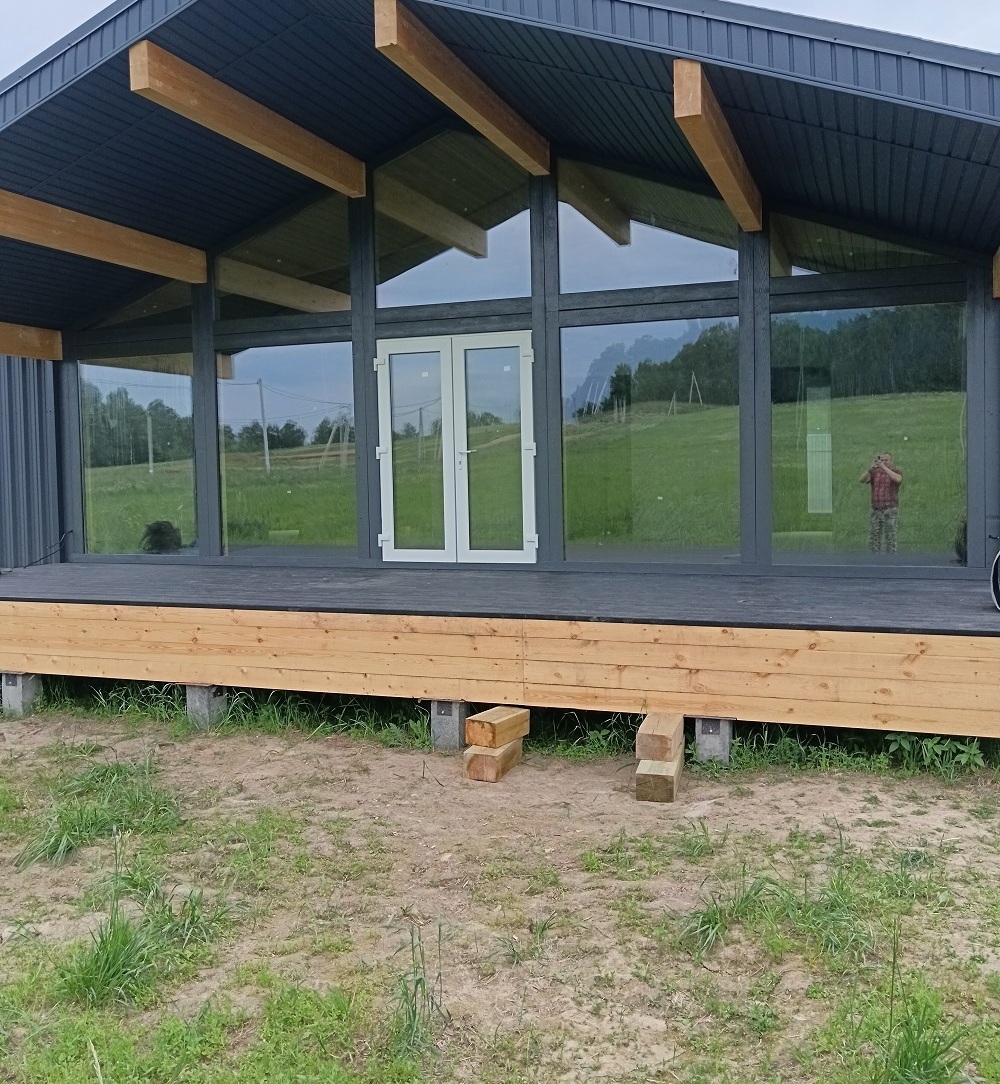Проект дома готовился индивидуально по моим пожеланиям. В связи с этим возникли сложности с остеклением. Но бригада все равно справилась с задачей, получилось все аккуратно. Уложились за 4 дня.