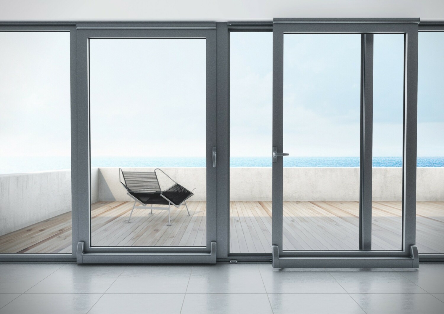 В ассортименте окон и дверей имеются не только поворотно-откидные и распашные окна и двери, но и раздвижная портальная система открывания с максимальной высотой створки 2400 мм и максимальной шириной створки 1500 мм, весом до 160 кг.