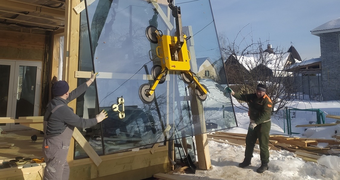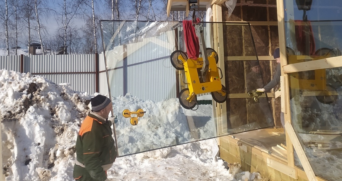 Монтаж стеклопакетов мини краном внутри дома