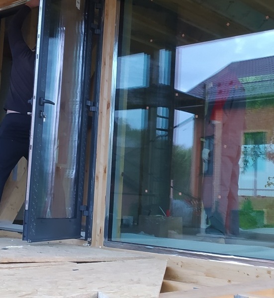 Так же для открывающихся окон и дверей используем алюминиевый профиль с терморазрывом от промерзания. Его тоже можно покрасить в любой цвет по RAL для гармонии общего дизайна фасада.